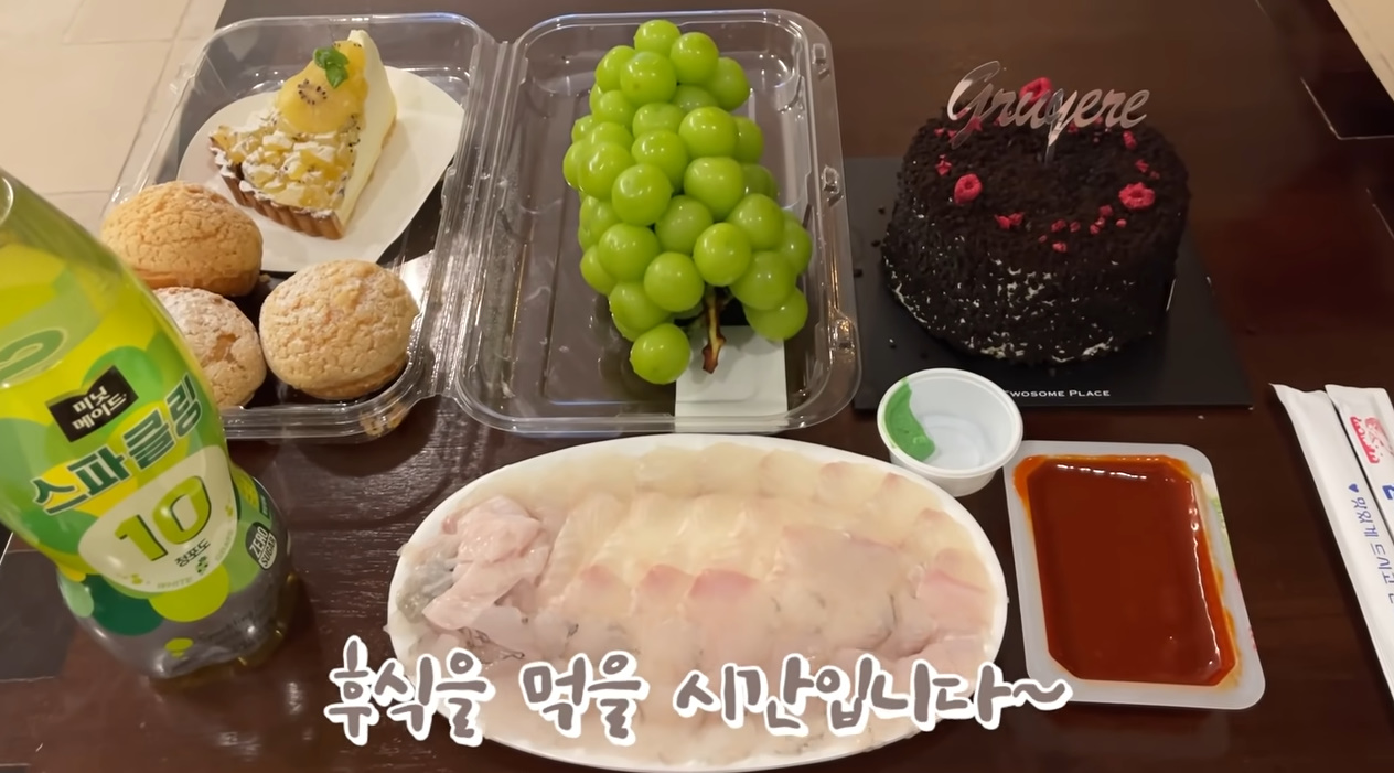 숙소가서 후식 먹는 입짧은 햇님