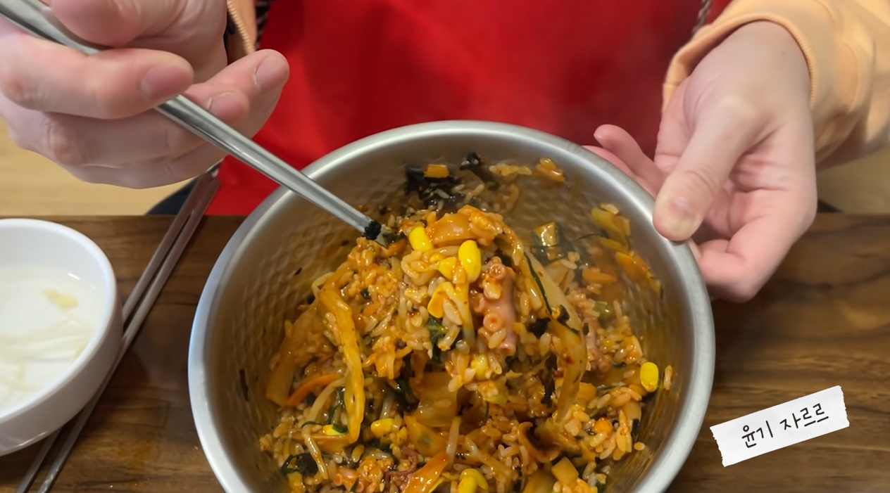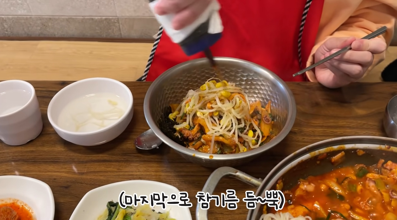 비빔밥에 참기름 듬뿍 넣어서 비벼먹기 윤기좌르르 ㅠㅠ
