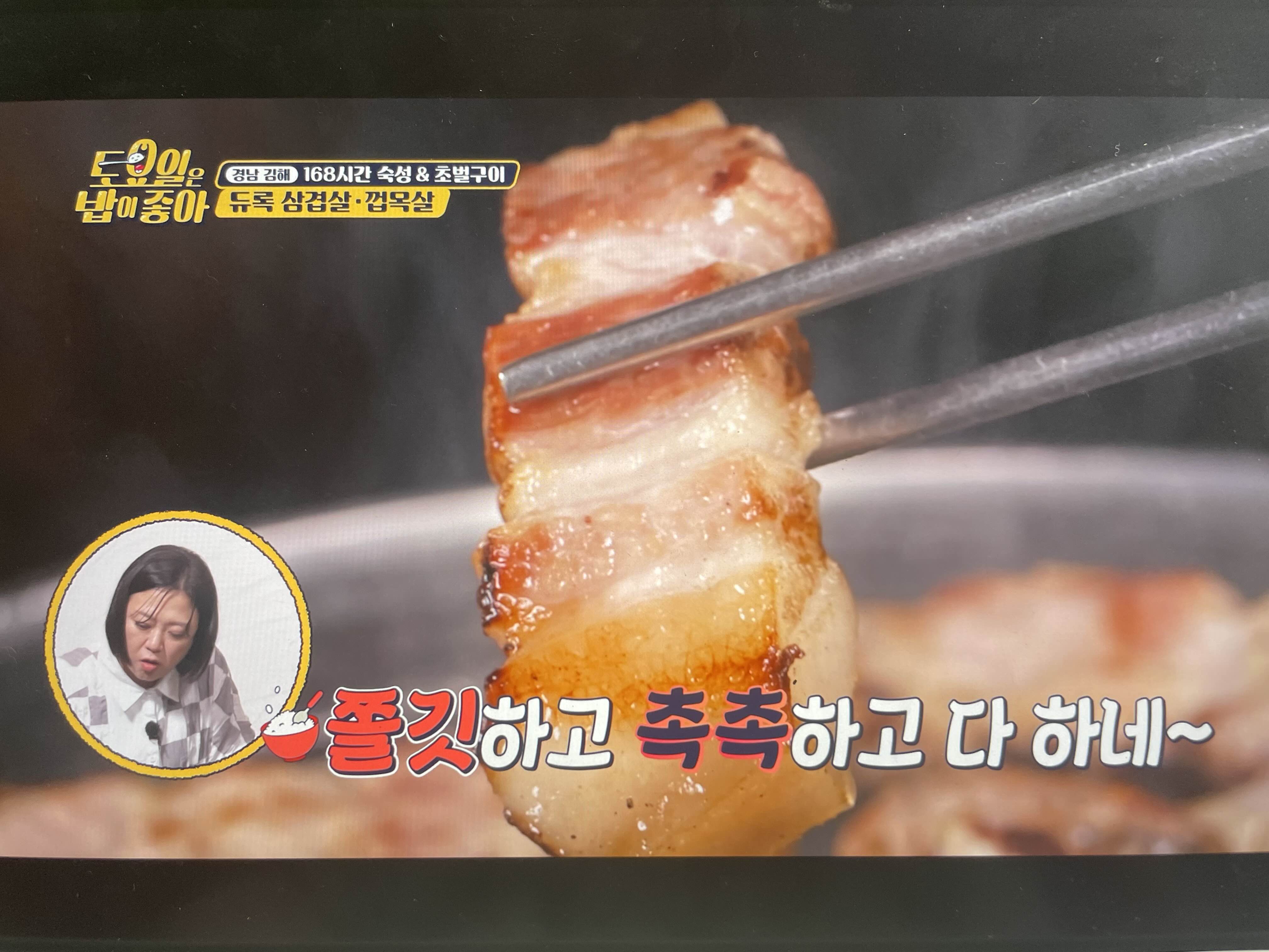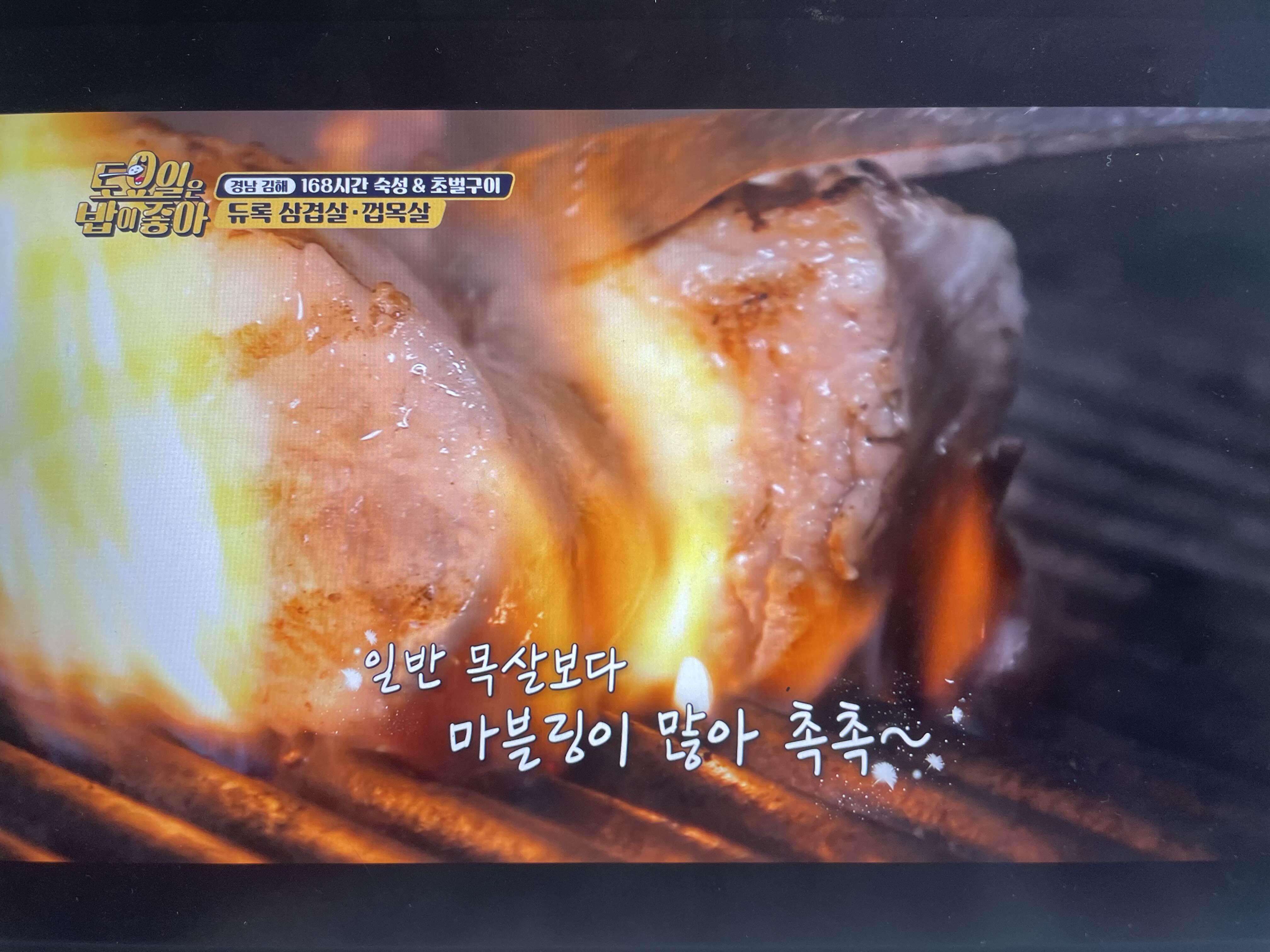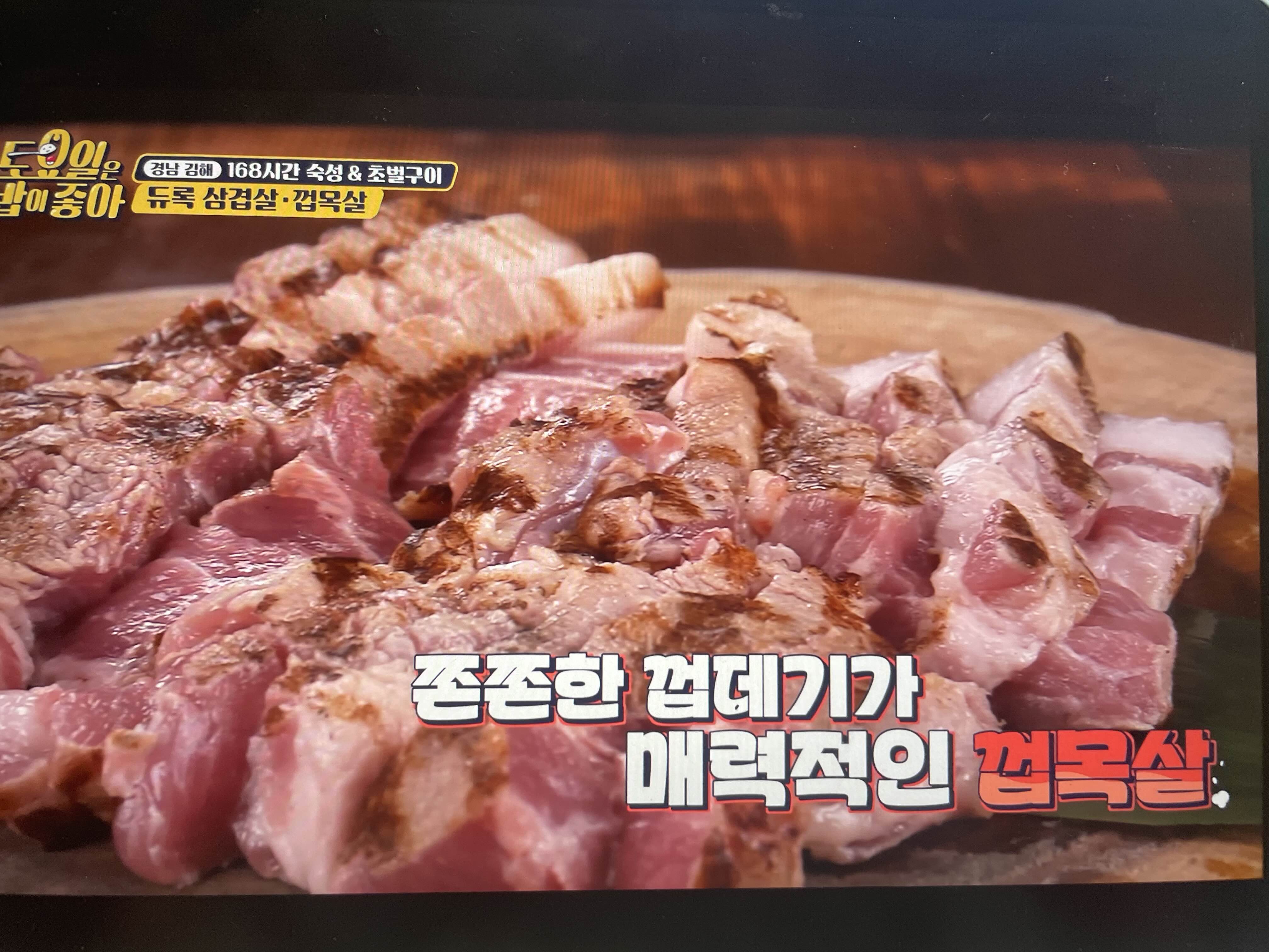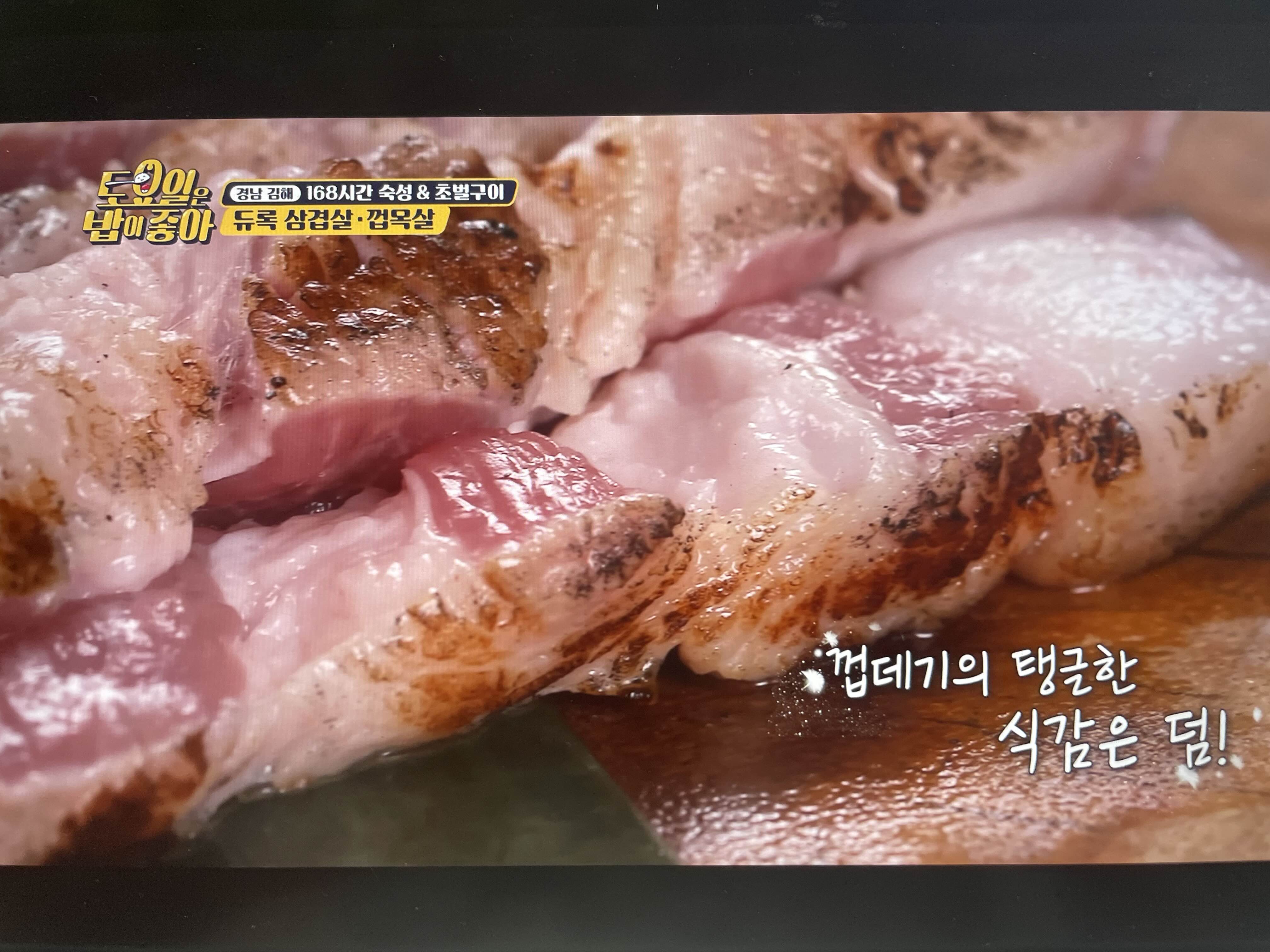 쫄깃하고 촉촉하고 다하고 삼겹보다 껍목살이 더