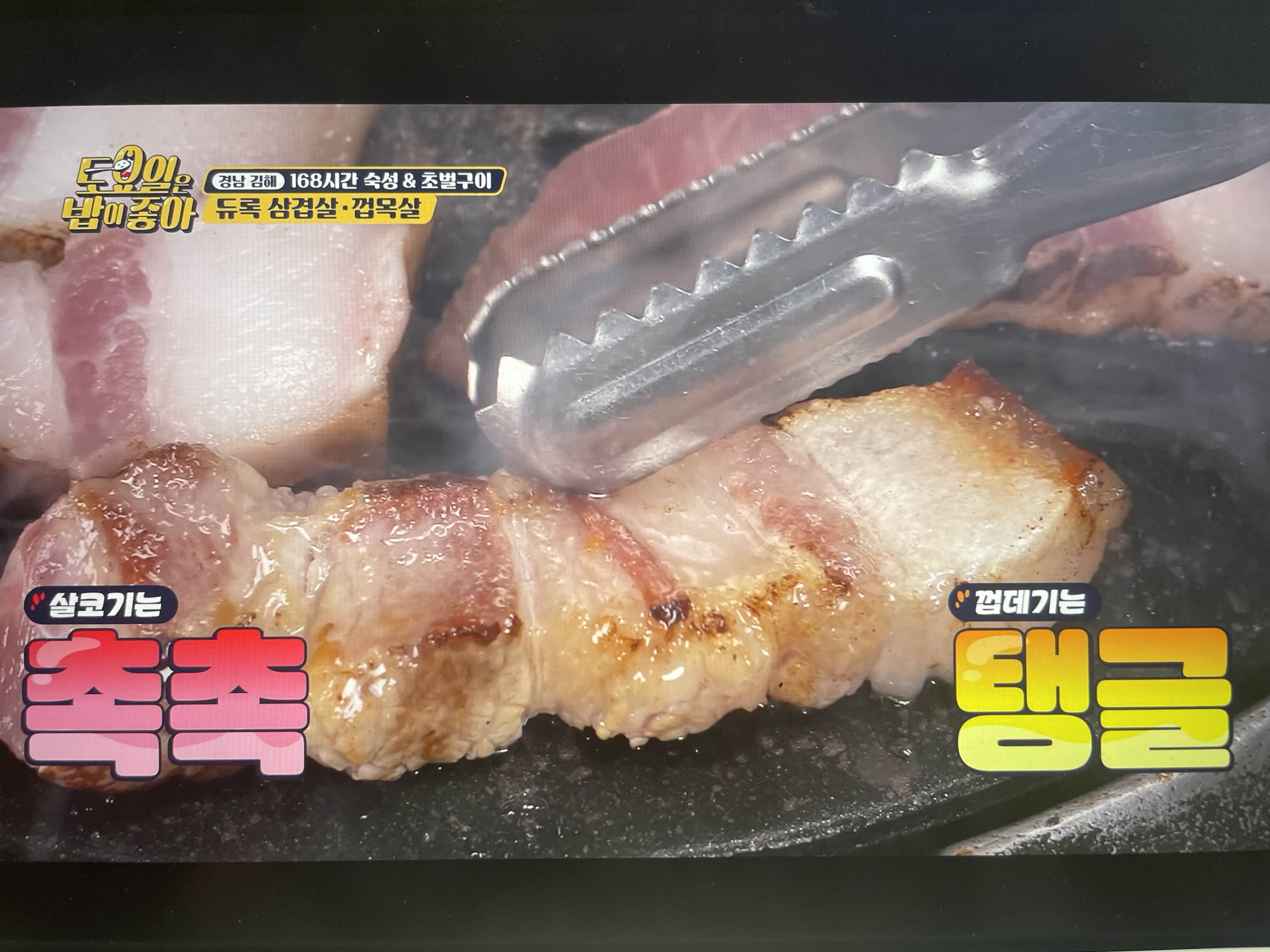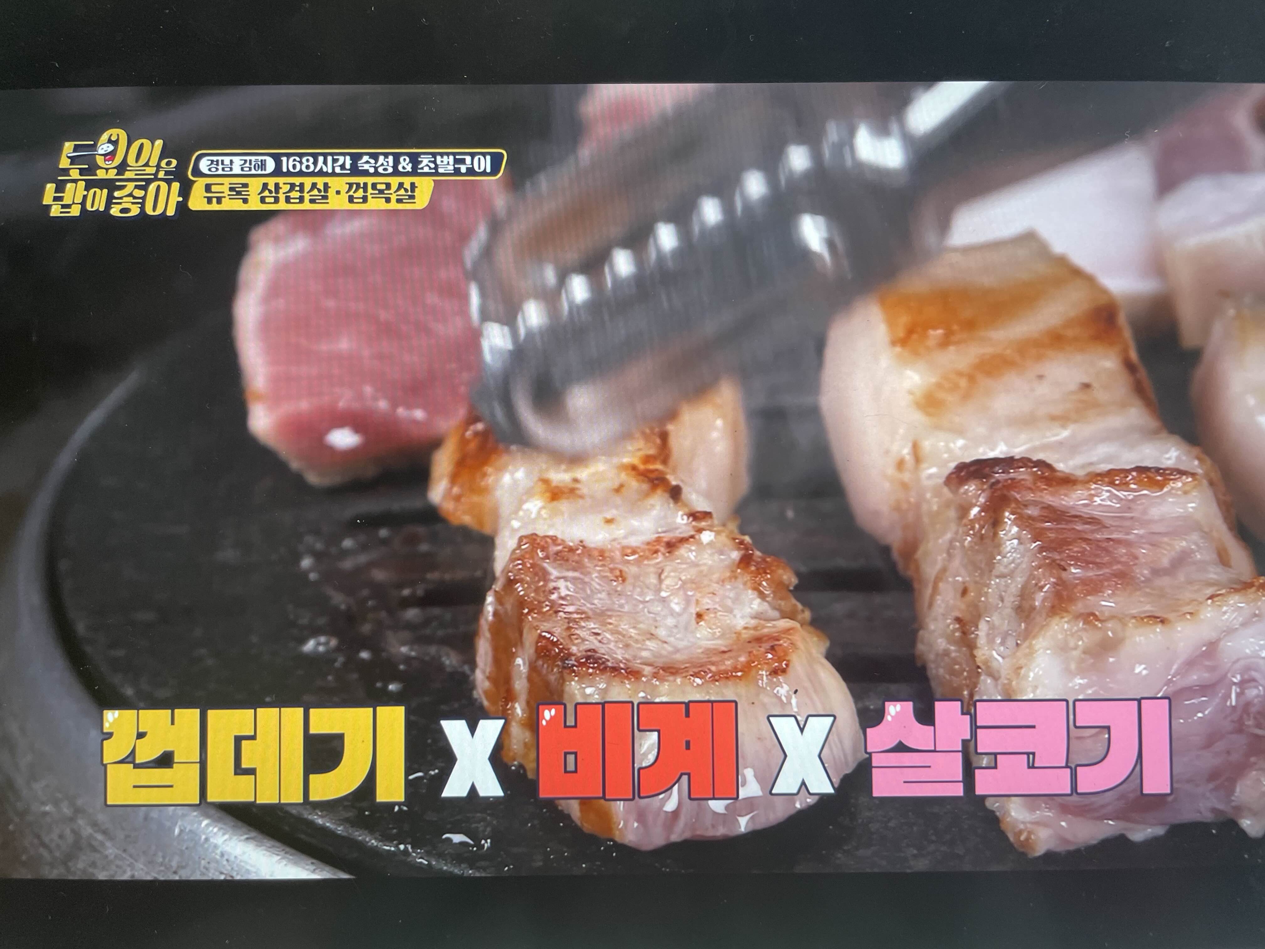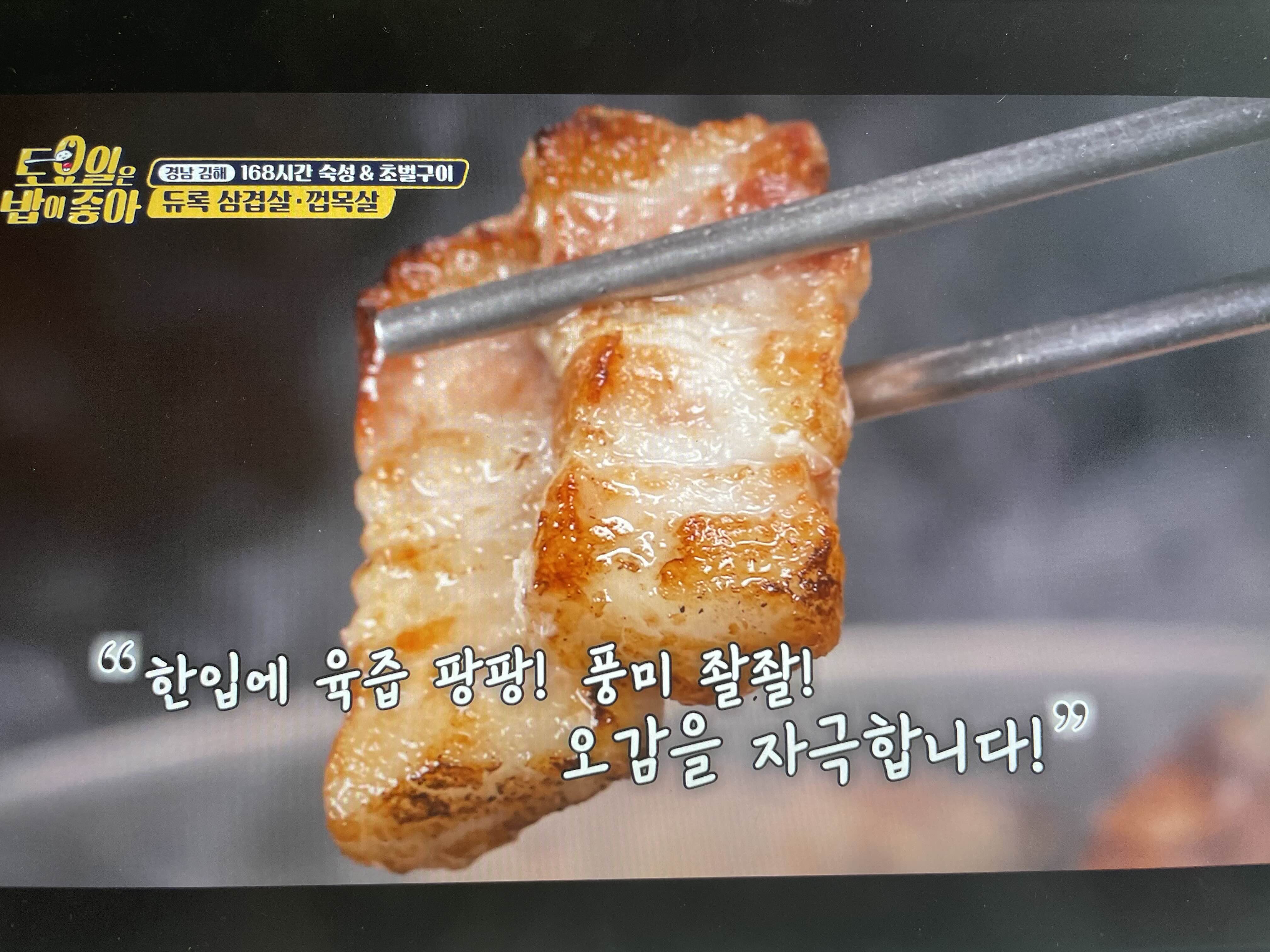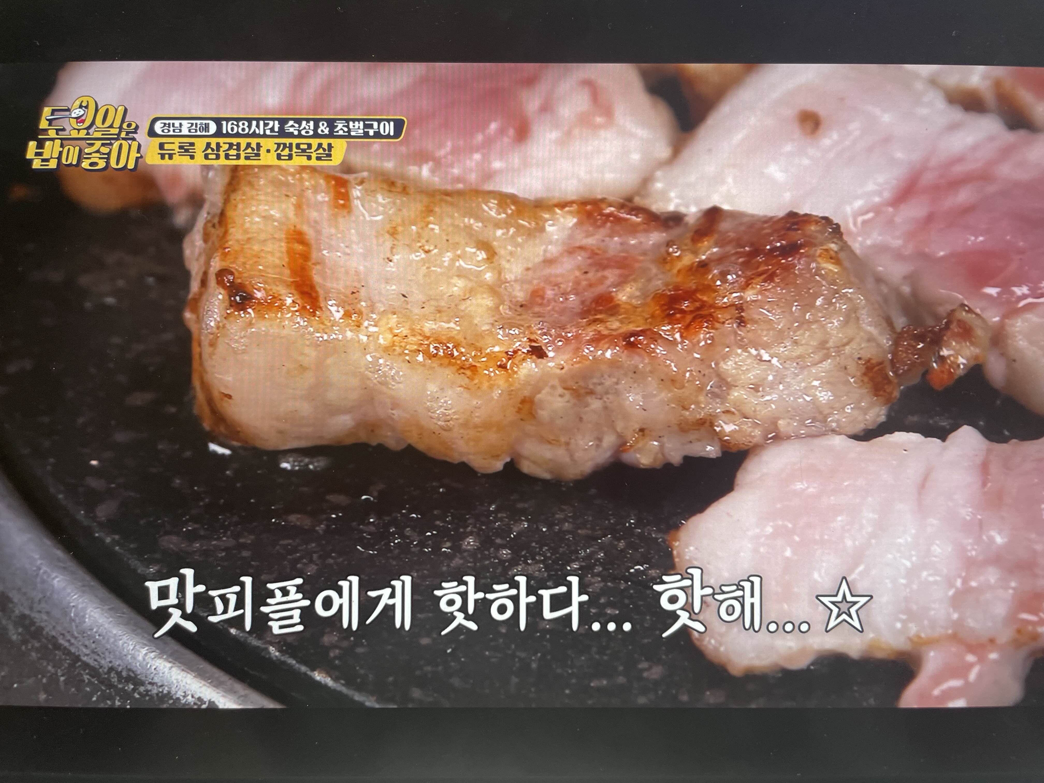 쫄깃하고 촉촉하고 다하고 삼겹보다 껍목살이 더