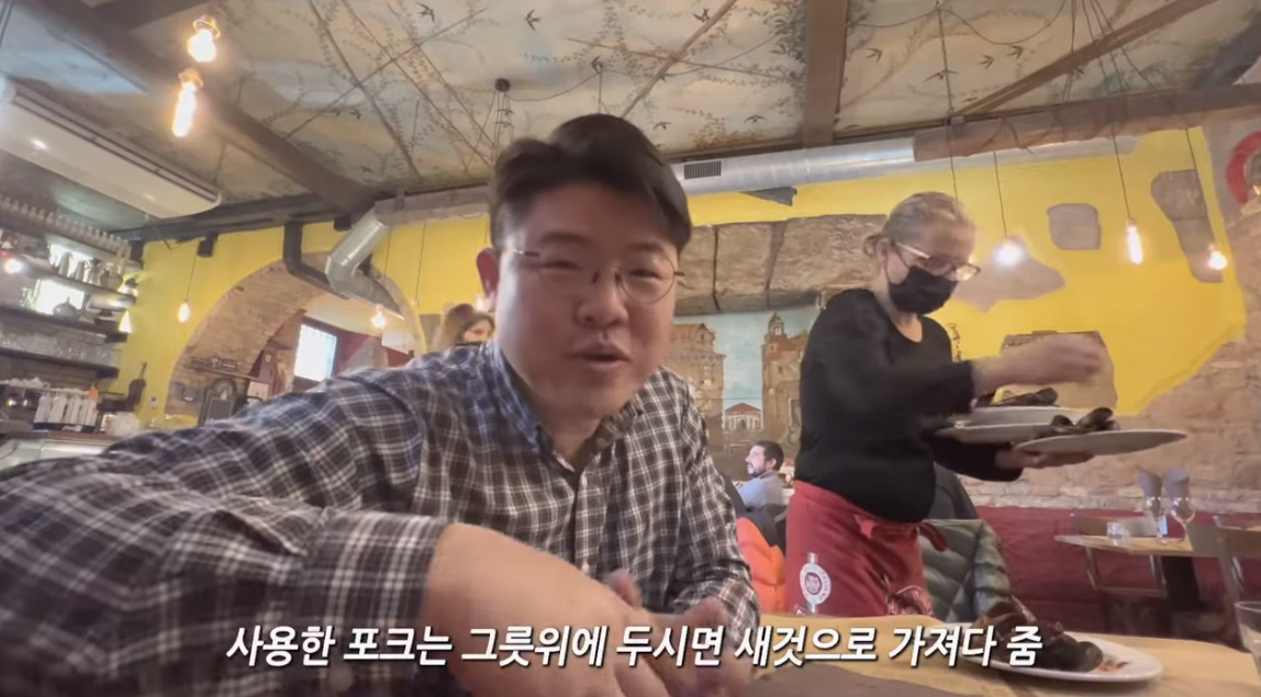 사용한 포크는 그릇위에 두면 새것으로 가져다 주고