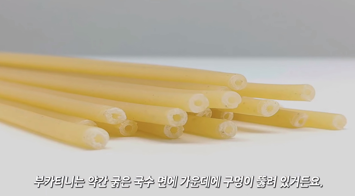 부카티니는 약간 굵은 국수면에 가운데