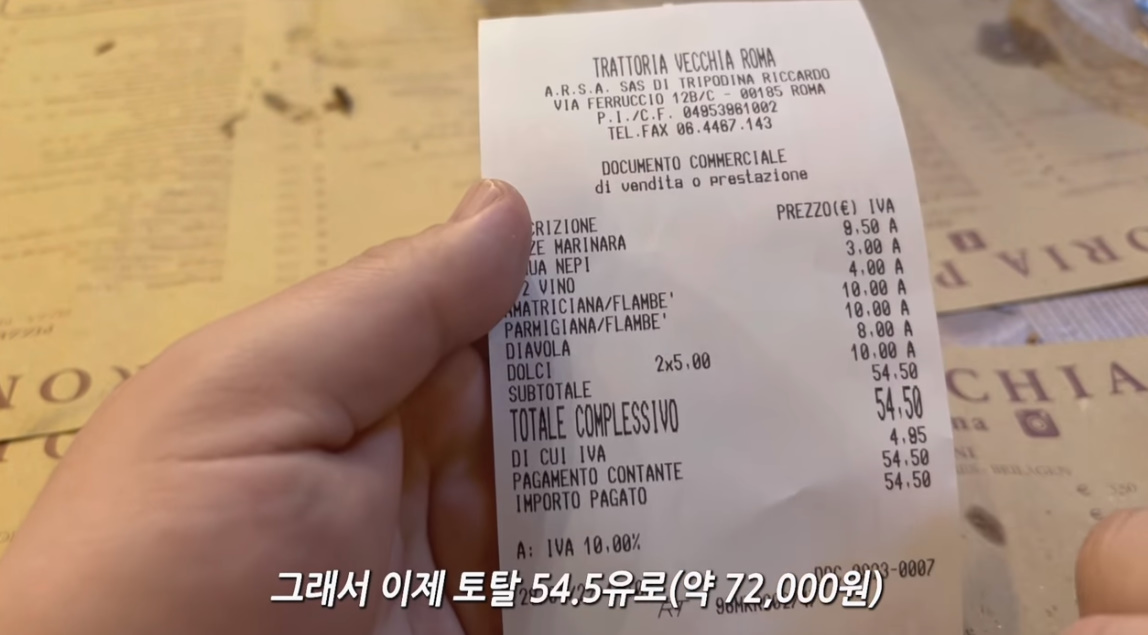 식당은 베키아 로마 라는 식당인데