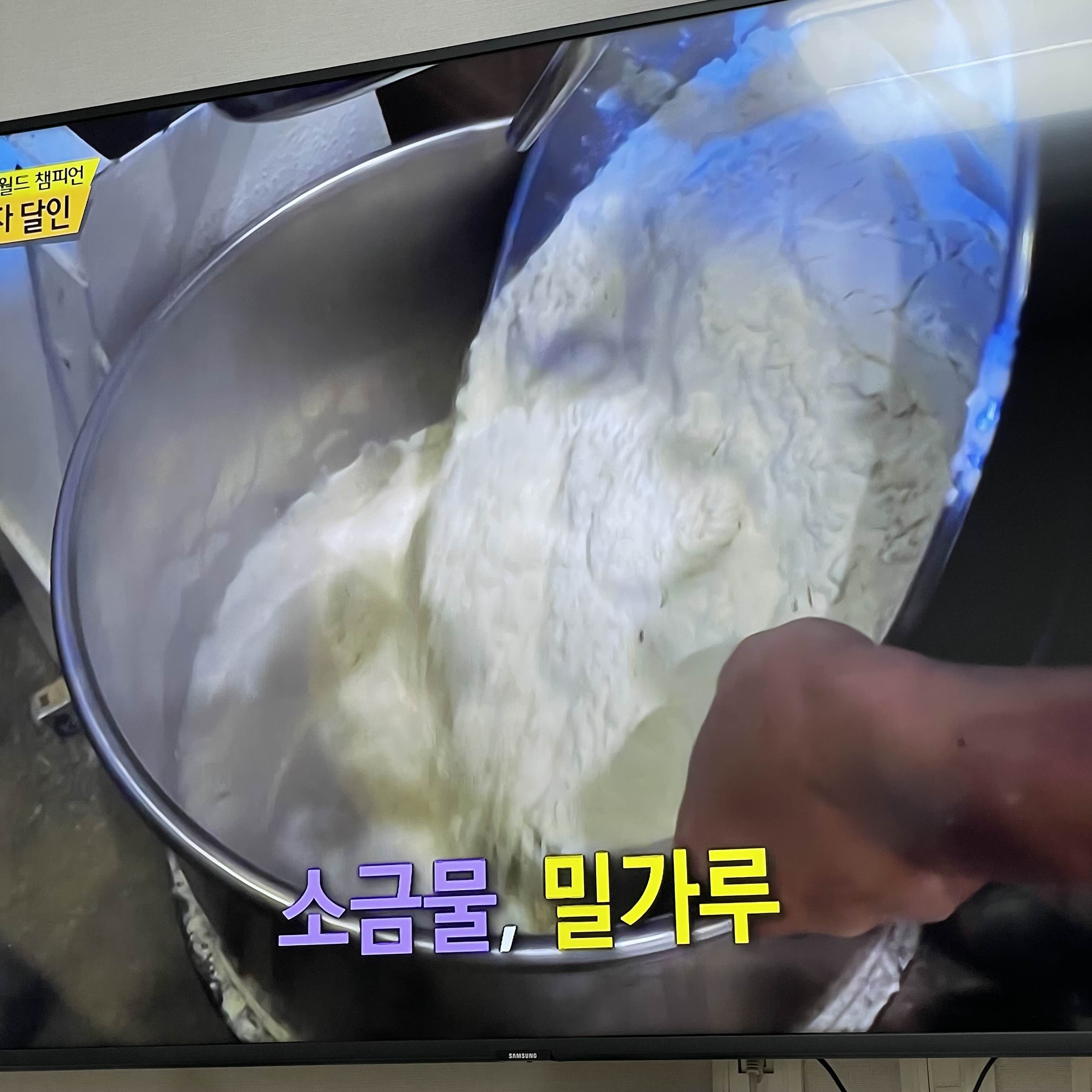 그후, 소금물, 밀가루로 반죽을 해주고,
