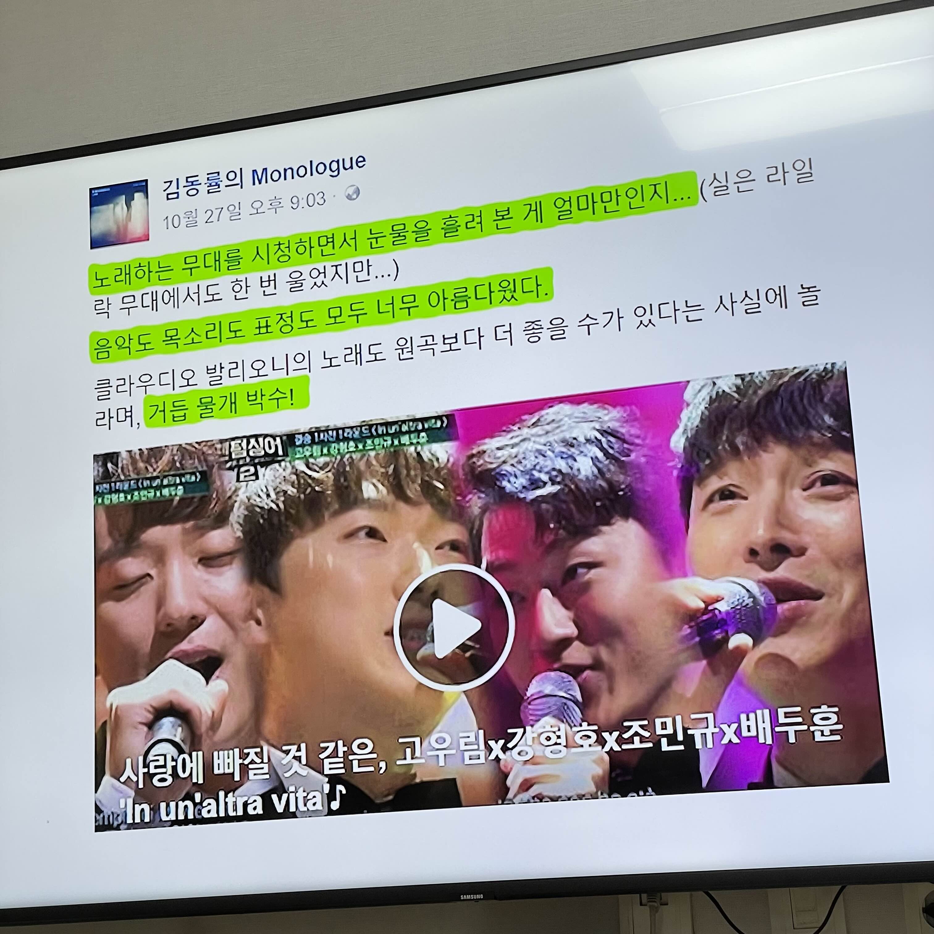 노래하는 무대를 시청하면서 눈물을 흘려본게 얼마만인지 라면서