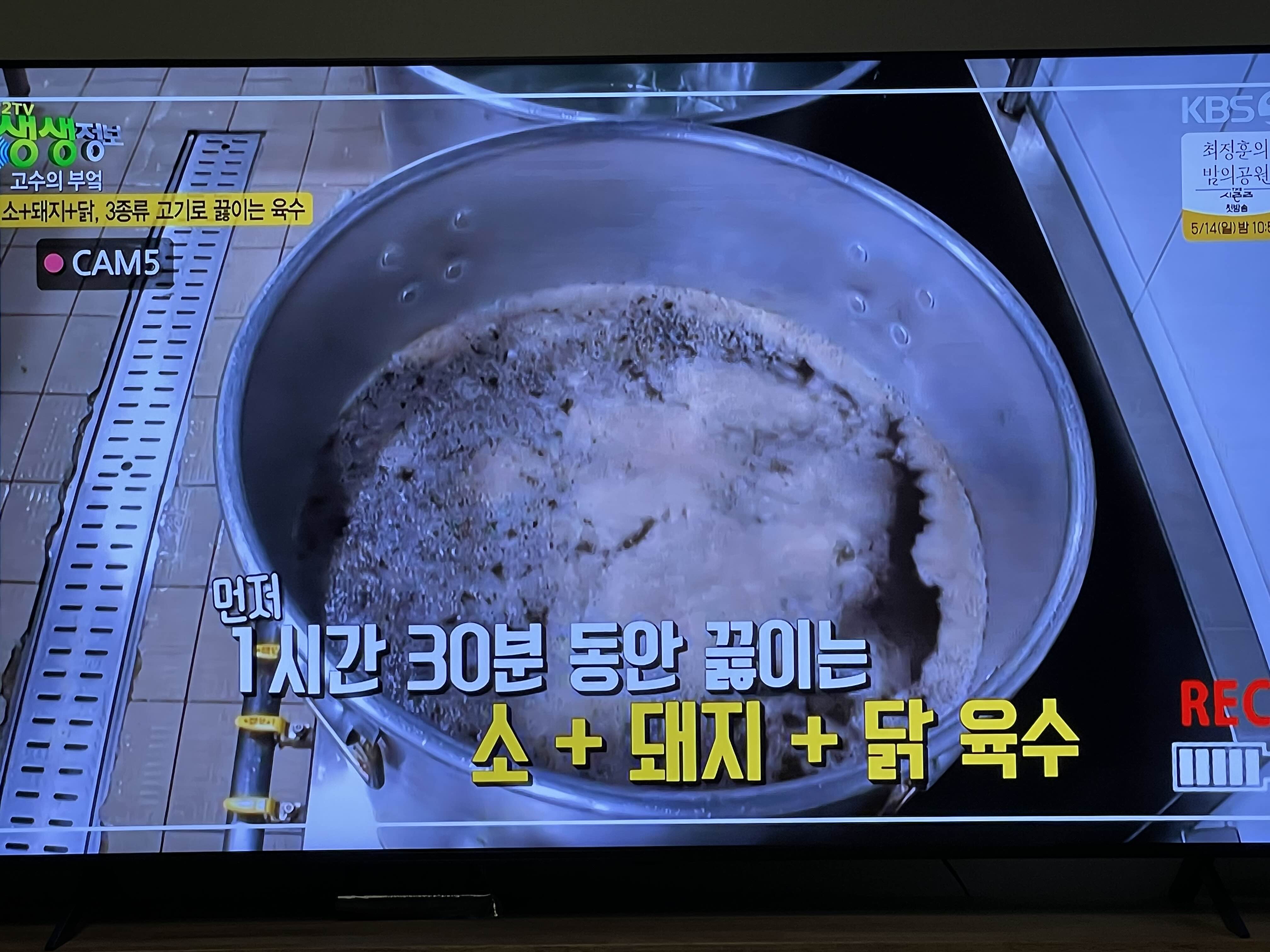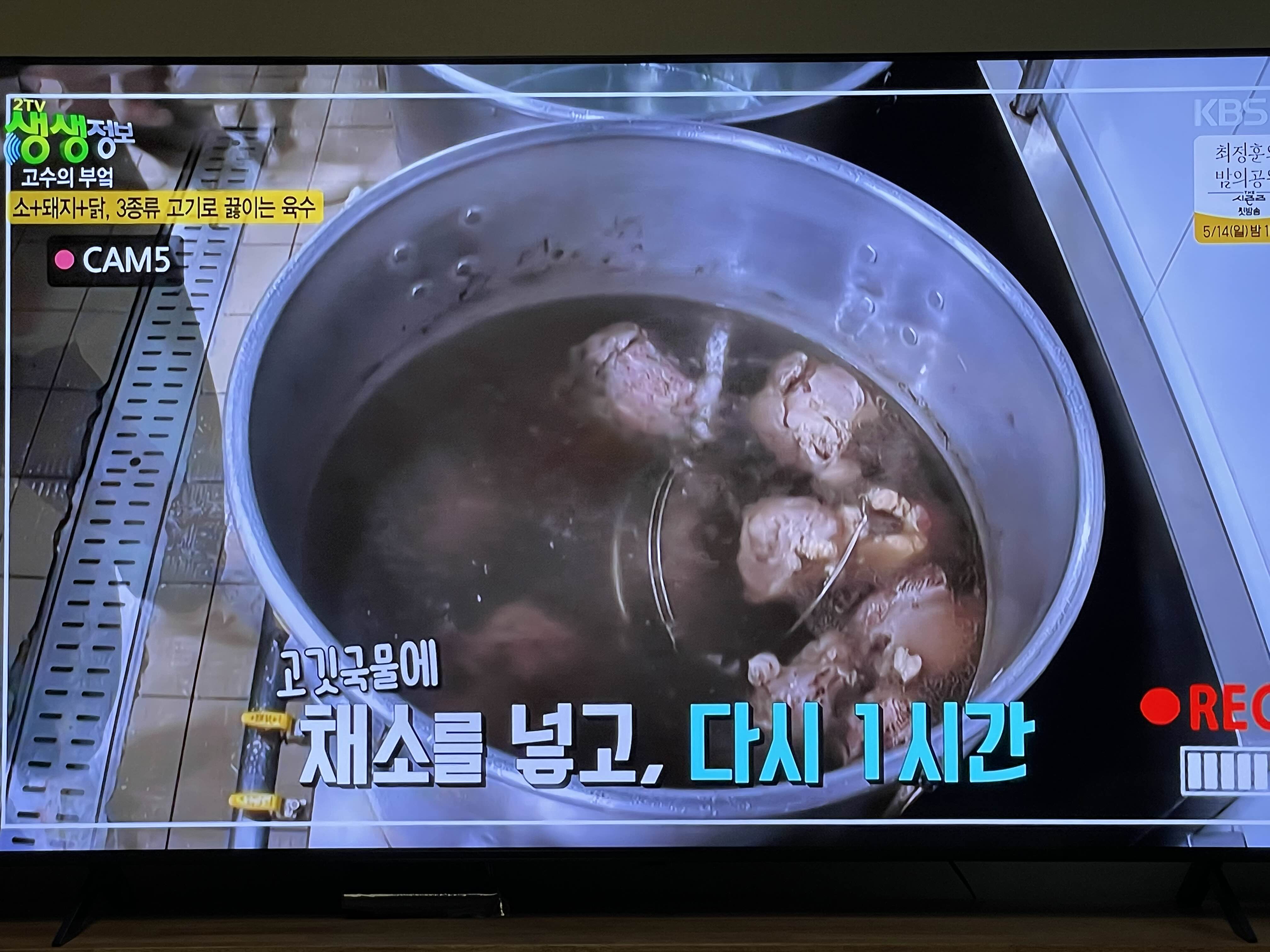 먼저 1시간30분 정도 소, 돼지, 닭육수를 끓이신다고 합니다
