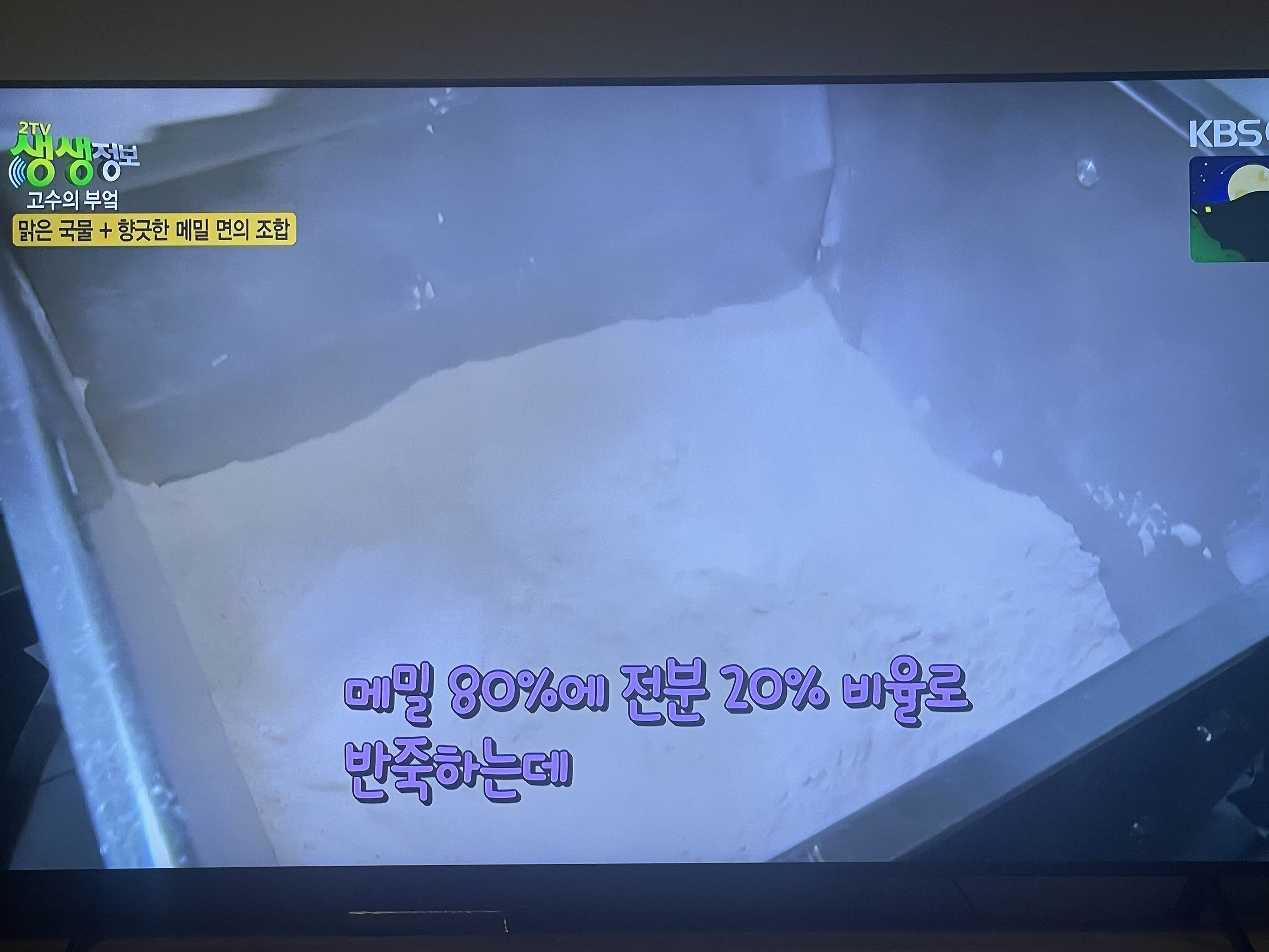 메밀 80프로 전분 20프로 비율로 반죽한다고 합니다