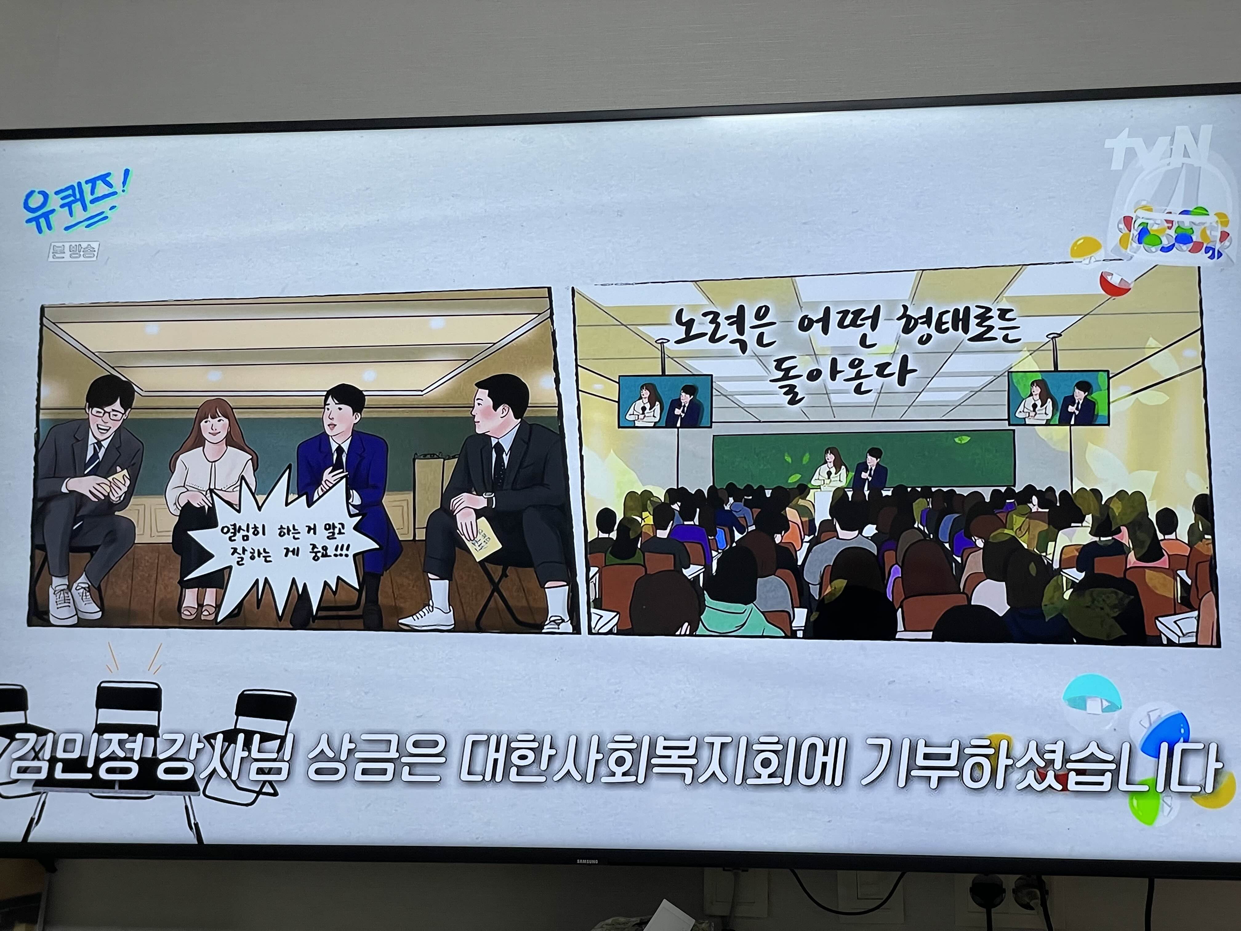 김민정 강사님은 대한사회복지회에 기부를 하셨다고 해요 역시나 재밌었던 유퀴즈 만만세!!!