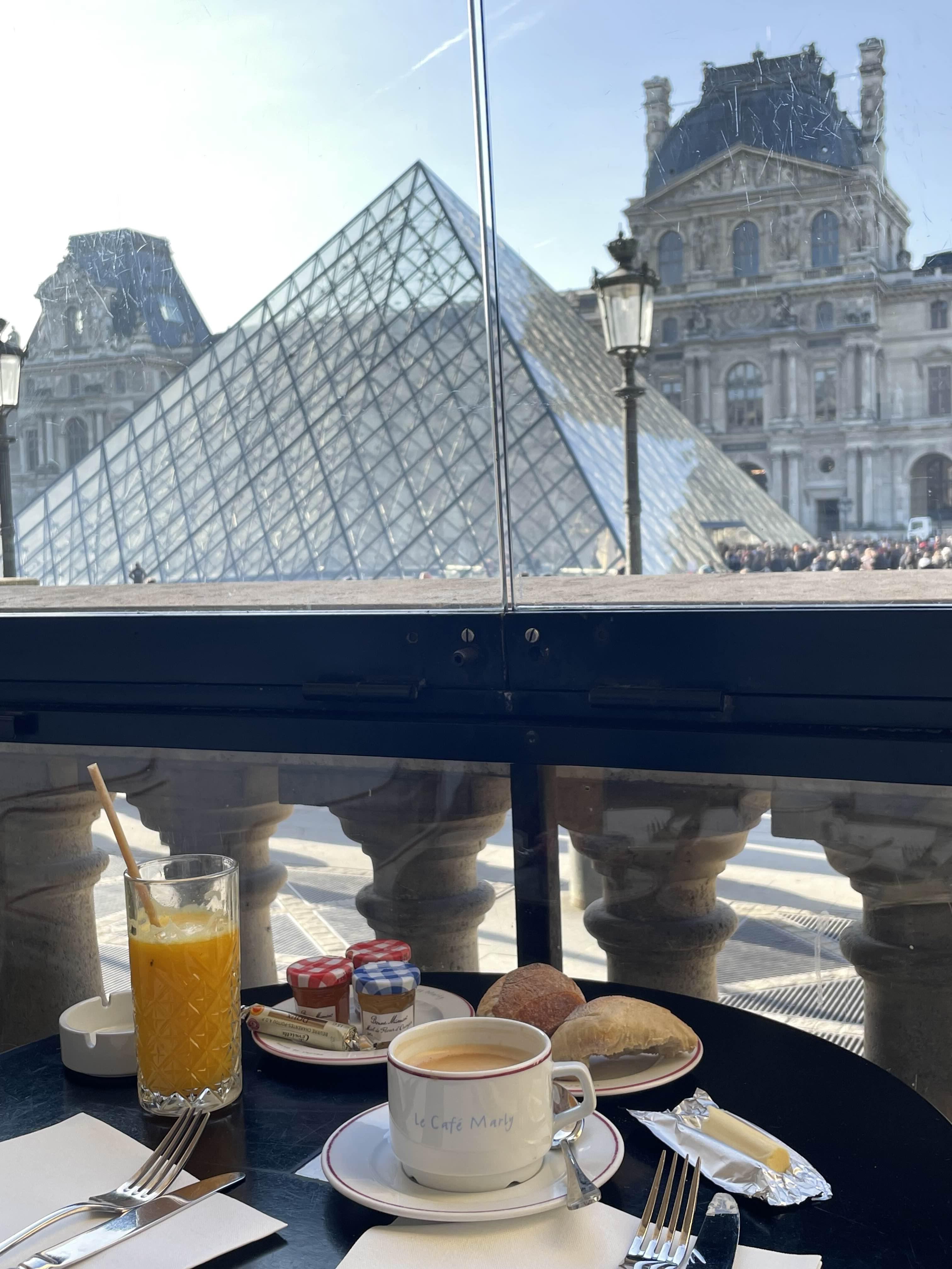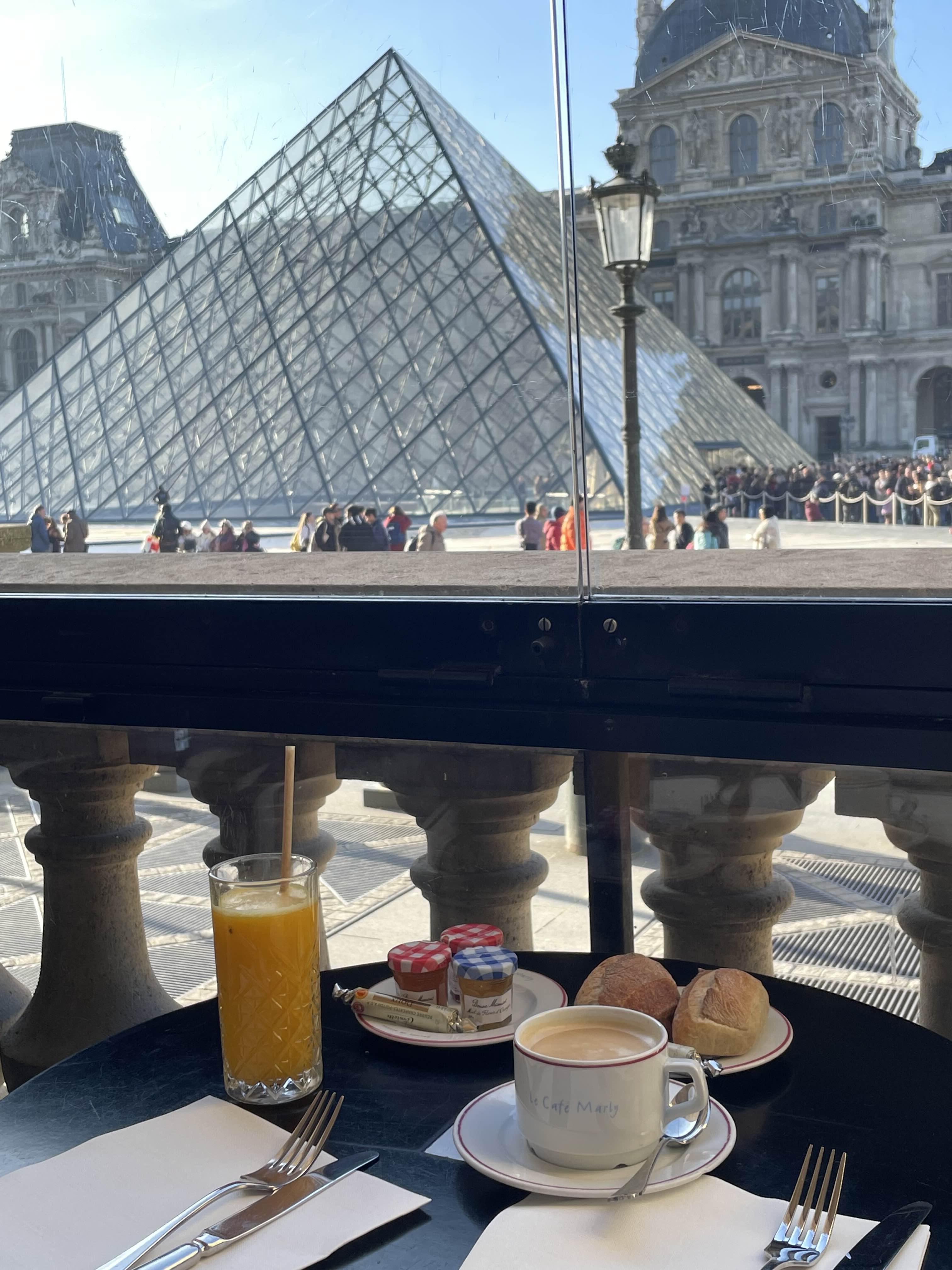 루브르박물관 피라미드뷰 보면서 먹는다
