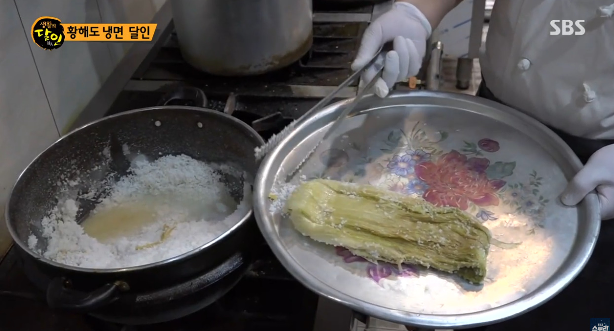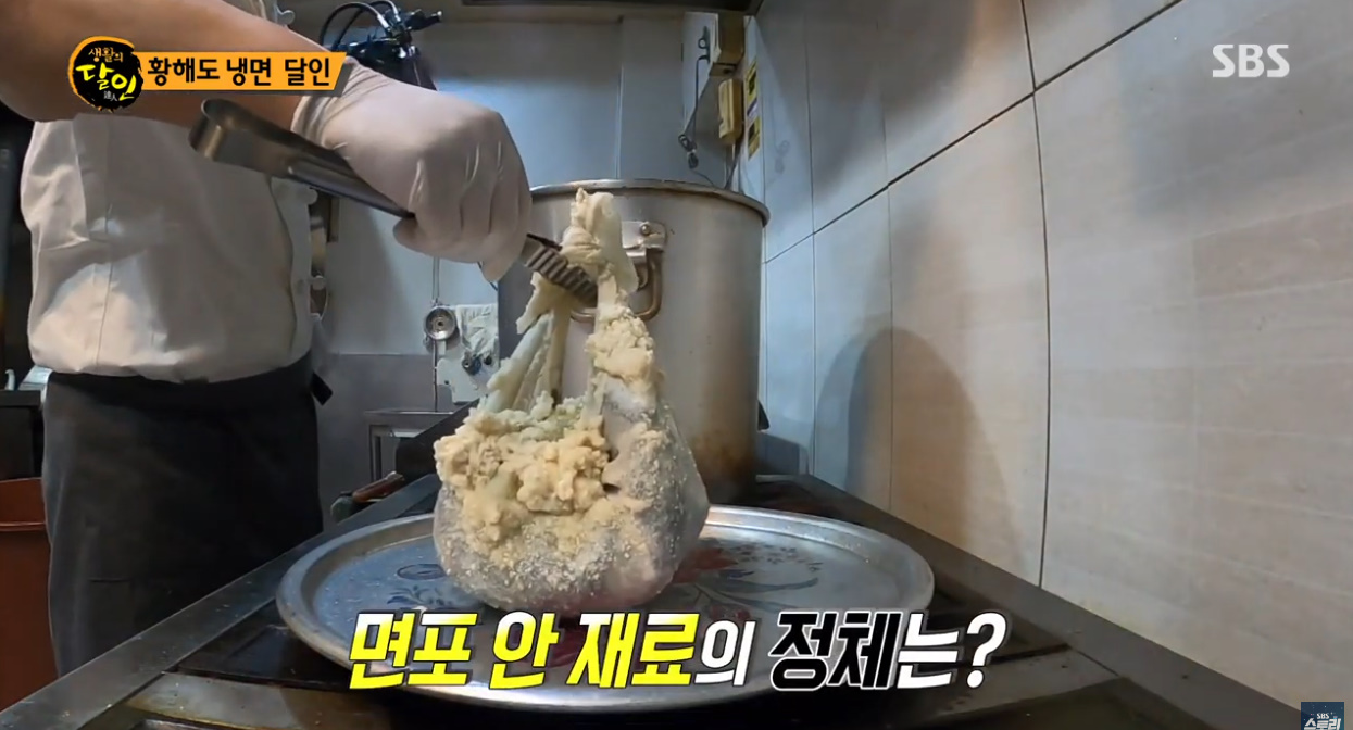 면이 나오는데 그걸 삶아서 먹었다고 하면서